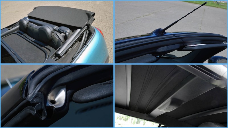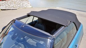Ugyanakkor ezeket nélkülözve sem lehet panaszunk körülbelül 60 km/h-ig. A tetőt egyébként 30 km/h-ig tudjuk mozgatni, ami városi körülmények között már bőven elegendő ahhoz, hogy azalatt a maximum 15 másodperc alatt ne dudáljanak le hátulról, ha éppen arról van szó – országúton persze már érdemes előre gondolkodni. A hangulat tehát kabrióként hág csak a tetőfokára igazán, de azért van néhány kisebb hátulütő is. Az egyik legzavaróbb ilyenkor, hogy a kívülről egyébként jól mutató, összehajtogatva az autó hátuljára „ülő” vászontető bizony jócskán akadályozza a kilátást hátrafelé – ilyenkor a középső tükör gyakorlatilag feleslegessé válik.