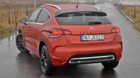 A menetteljesítményekre egyébként nem lehet különösebb panasz: a 120 lóerő ugyan nem feszíti szét a kasztnit, de az ígért dinamikát bőven hozza. A turbólyuk ugyan jól észlelhető, 2000 felett azért meglódul a DS 4, és egészen sokáig húzza. Száguldozni persze nem fogunk a megemelt kompakttal, már csak a kissé ügyetlen hátsó futómű miatt sem. A felfüggesztés hangolása egyébként is kissé keményre sikerült, amit talán a 3 centis emelésnek köszönhetünk – mindenesetre, ha nem is kifejezetten zavaróan, de azért érezzük magunk alatt az úthibákat. Minderre rátesz egy lapáttal a csatolt lengőkaros hátsó megoldás, mely tempósabb kanyarokban nem teljesít túl fényesen, az úthibákon pedig hajlamos elpattogni.