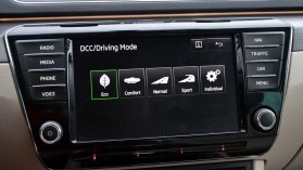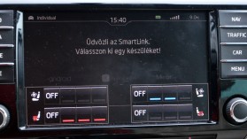 Egyszerű dizájn, de jó minőség és ergonómiaA mostani tesztautóban nem csak a váltó, de a futómű is harmonikusabb képet festett, mint legutóbb, és ez sem véletlen. Ez nem az összkerékhajtás, hanem az ezúttal megrendelt állítható lengéscsillapítás hozománya, ami bő 300 ezer forintot kóstál, de annyira jól szuperál, hogy minden fillérét megéri, ráadásul tartalmazza a hasznos üzemmód-választót. Azonos kerékmérettel jól érezhetően finomabban csillapít, Comfort üzemmódban hajós karakterrel felruházva a limuzint, Sport állásban pedig egészen dinamikusan terelgethető a nagy Škoda, s a vezetési élményt csupán az erősen elszigetelt, nem túl pontos kormánymű rontja le kicsit, bár ez a kategória nem is erről szól. Az extralistán különben érdemes hosszan rágódni, ugyanis a márka egészen jó áron méri az extrákat. Jó dolog az alárúgással nyitható elektromos csomagtérajtó, a kulcs nélküli rendszer, kényelmesek a fűthető-hűthető memóriás bőrfotelok, a gyerekek imádni fogják a teljesen körbeárnyékolható hátsó sort, míg a menetbiztonságos az asszisztens rendszerek teljes garmadája hivatott fokozni, szintúgy egészen épeszű árakon.