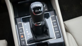 Persze nem is az, főleg, hogy a 190 lóerős 2.0 TDI és a 4x4 hajtás párosa esetén a fokozatokat szériában a konszern duplakuplungos DSG automataváltója cserélgeti, persze villámgyorsan. A váltó ebben a konfigurációban jobban harmonizált a hajtáslánccal, mint a korábban tesztelt 150 lóerős motor esetében: mindig tökéletesen időzítette a kapcsolásokat, az ECO üzemmód-választó takarékos állásában ügyesen vitorlázott, gyorsan abszolválta a start/stopos műveleteket, nem volt hektikus, s mindig a megfelelő időpontban kapcsolt. Persze a váltások finomsága továbbra sem éri el a klasszikus bolygóműves automatákét, de cserébe hatékony és gyors a váltómű, ráadásul kevés erőt emészt fel. Az áttételezés kellemesen hosszú a minél takarékosabb működés érdekében, de néhány fokozatnál túlzásba estek a tervezők és túl nagy fokozatlépcsőket használtak. Szó se róla, így is rendben van a hajtáslánc, de a 240 lóerős kétturbós Passat TDI hétfokozatú váltója jól jött volna a Škodának.