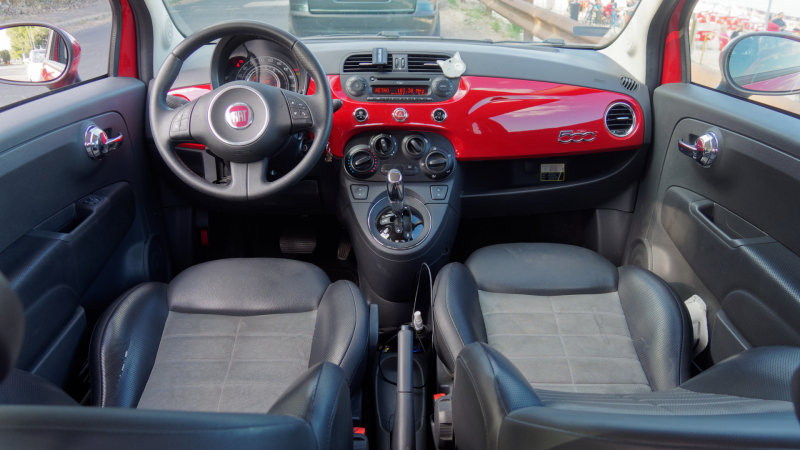 Sok autóra igaz a belül nagyobb, mint kívül jellemzés. A Fiat 500 nem ilyen: az apróság amilyen kicsi kívül, olyan szűkös belül. A vezetőülésben helyet foglaló 90 kiló környéki sofőr bal könyöke folyamatosan hozzáér az ajtóhoz, az olaszos stílusban előadott ablakon kikönyöklés nyári időben úgyszólván előírás. Eközben a jobb térd állandó kapcsolatban áll a váltókarnak otthont adó dudorral. Ezt a korlátozást kissé érthetetlen módon a villanyos 500-asok is fenntartják a sofőr és utasa között. És ha már az utas szóba került: ha a helyzet úgy kívánja, az anyósülés szinte a legelső pozíciójában használható férfiemberek számára is. Hogy mikor kívánja azt a helyzet? Például, amikor a jobb hátsó ülés ISOFIX pontjához csatlakoztatott gyerekülés nem árválkodik üresen. Sőt, némi kompromisszummal a bal hátsó ülésre is be tudott ülni mögém egy 165 centis utas. A kecses kiszállást egyszerűbbé teheti a légtornász múlt, ellenkező esetben egy segítő kéz könnyíthet a kikászálódáson.