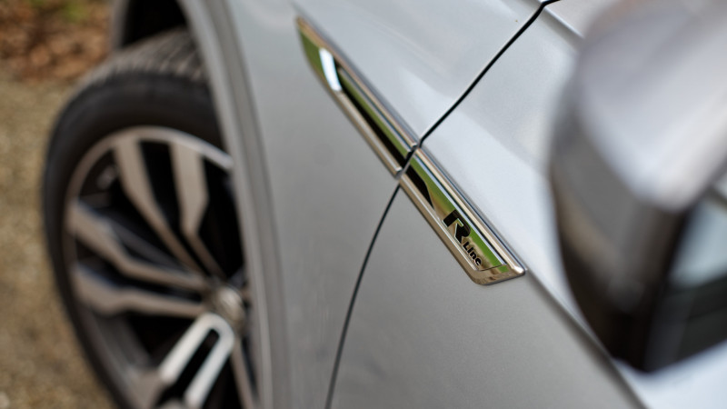 Az arányok megmaradtak, a hátulnézet is barátságosan semleges az élesebb lámpa dacára, szemből azonban tagadhatatlanul szorult némi agresszió a megjelenésbe. Ezt fokozza tesztautónk R Line csomagja, amely elsősorban alapból nagyobb kerekében és mélyebbre húzott, nagyobb légbeömlőket formáló lökhárítóiban különbözik a többi modelltől, illetve a belső tér kárpitozásban. Itt érdemes megemlíteni, hogy személyre szabás tekintetében minden eddiginél bőségesebb lehetőségünk van, hiszen üléskárpitozásból eleve kapunk nyolcfélét, de például külső színből is egy tucat áll a rendelkezésünkre. Hajtásláncokból már nincs ennyi: a 3,0 literes V6-os dízelmotort kérhetjük 286 lóerővel, emellett pedig van egy 231 lóerős alapmodell, ami mellett szerény felszereltsége és mérsékelt árelőnye okán kevesen teszik majd le a voksukat. De ne szaladjunk ennyit előre!