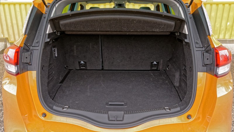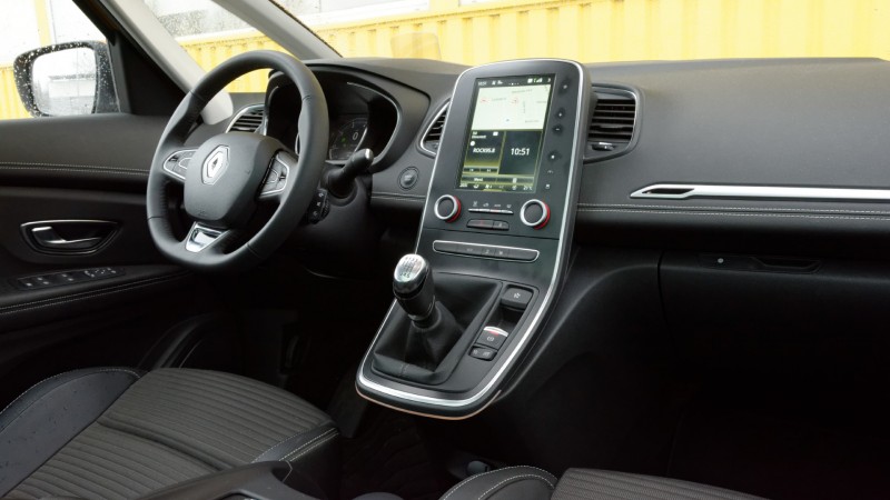 Látványos, de nem igazán kényelmes székekA látványos formák általában a belső tér rovására mennek – de itt szerencsére nem ez a helyzet. Elöl-hátul egyterűsen tágas helyen boldogulhatunk, ráadásul egészen jó körpanoráma is segíti a vezetést. Sajnos az első ülések nem bizonyultak túl kényelmesnek, a több szájból érkező panaszt pedig akkor értettük meg igazán, amikor a tesztautót kicserélve beültünk egy Talisman-ba - a középkategóriás kombi ülései már azonnal, első érzésre fényévekkel kényelmesebbnek bizonyultak. Hátul még felnőttek számára is kellemes helyviszonyok uralkodnak, az ülések kialakítása pedig azon kevés modellek közé teszi a Scénic-et, amelyet öt személlyel sem szentségtörés használni.