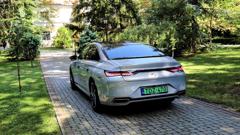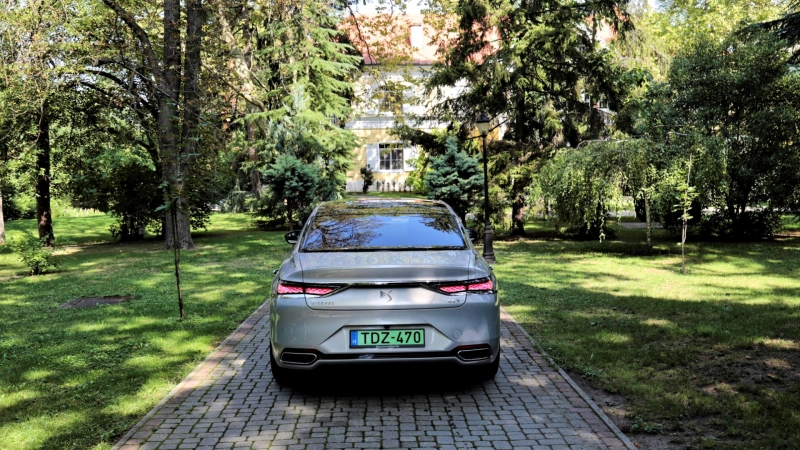 De ne menjünk ennyire előre, hanem inkább csodáljuk meg az önmaguktól behúzódó kilincseket és a tetővonal lágy esését – mindez egyfajta könnyedséget kölcsönöz a közel ötméteres autónak. A hátsó fényszórók is csodálatosan aprólékos háromdimenziós hatást keltenek, a hátsó szélvédőbe integrált lámpatestek az ős DS-t idézik. A motorháztetőn végighaladó díszcsík jól látszik a vezető pozíciójából, olyan mintha valami klasszikus veteránautóban ülnénk.