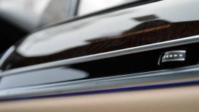 Az izgalmak azonban egyértelműen a méretes ajtók feltárásával hágnak a tetőfokukra: elöl semmi változás a normál testvérekhez képest, de hátul már más a helyzet. Mielőtt még rátérnénk a luxus magasiskolájára, a rend kedvéért azért el kell mondanunk, hogy a gyakorlatilag minden extrát tartalmazó tesztautó esetében minőségi és összeszerelési téren nem találhatunk fogást. Azt hiszem, ha ez nem így lenne, az felháborító is lenne. A 7-es utasterének szinte minden részletét a legfinomabb anyagok borítják: ahol nem a puha Nappa bőrkárpitokkal találkozunk, ott valódi fémet vagy éppen erezett gesztenye nemesfa betéteket tapogathatunk, legalábbis ebben a konfigurációban. A masszázsfunkciós komfortülések királyi kényelmet nyújtanak és minden irányba elektromosan állíthatók – és természetesen szellőztethetők és fűthetők is. Ha mindez még nem lenne elég, az ülésfűtéssel együtt a középső és a szélső könyöklőket is fűti az autó, de kormányfűtés is rendelkezésre áll.