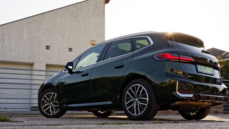 A 230e hajtáslánc tehát annak ellenére a legjobb, amit a 2-es Active Tourer-hez kaphatunk, hogy mint minden konnektoros hibrid, ez is jár kompromisszumokkal. Például teli tankkal 1930 kilogrammos az üres tömeg, amit még a 225 mm széles, sportos Pirelli P Zero abroncsok is nehezen palástolnak. A terhelésváltással járó kikerülő manővereknél a szokottnál jobban lendül táncba a modell feneke, egy picit korábban kell a menetstabilizálónak közbeszólnia, de a 2-es Active Tourer nem is a száguldozásról szól.