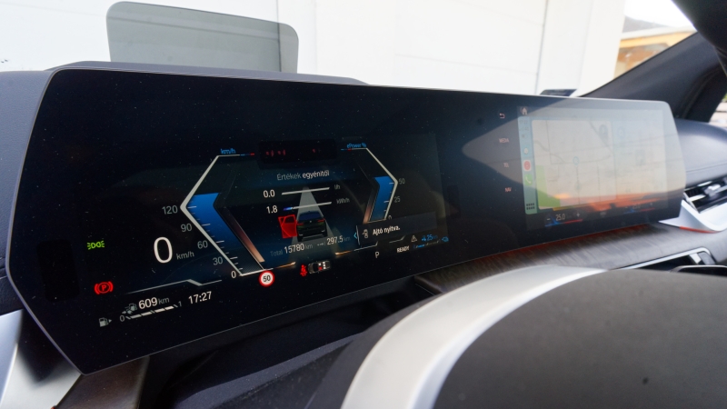 Az új rendszer egyik nagy előnye a szép, éles és gyors frissítésű kijelzések mellett az intelligenciája – egészen ügyesen tálalja és tolja alánk azokat a funkciókat, amikre vágyunk. Ugyanakkor a korábbinál is kissé körülményesebb a mélyebben rejtett funkciók feltárása, illetve az elrendezésen is tudnánk mit fejleszteni. Például a központi képernyő alsó sávjában helyet kapott a klíma hőmérsékletállítása, de az ülés- vagy kormányfűtésért már menüben kell matatnunk, holott a hőpanel mellett pont elfért volna a két funkció ikonja. Olyannyira, hogy magát az ülés- és kormányfűtést aktiválva meg is kapjuk az egy-egy ikont, viszont magát a funkciót ekkor sem kapcsolhatjuk vele, hanem rábökve a klíma menüt kapjuk a főképernyőre.