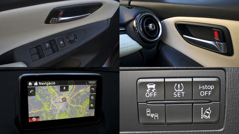 Előbbi felvetésem, a prémium érzet nem is teljesen alaptalan, mert az összeszerelés minősége nagyok korrekt, a macskaköves teszten meg sem nyekkent belül semmi, bármit matat rajta az ember, minden masszív, az anyagok tapintása magasabb kategóriában is megállná a helyét. Remekül éreztek rá a dizájnerek az apró részletekre, a műszerfal csőszerű szellőzői, a középkonzol klímavezérlői, vagy a finoman kidolgozott váltógomb semmivel nem póriasabb, mint egy kis prémiumban.