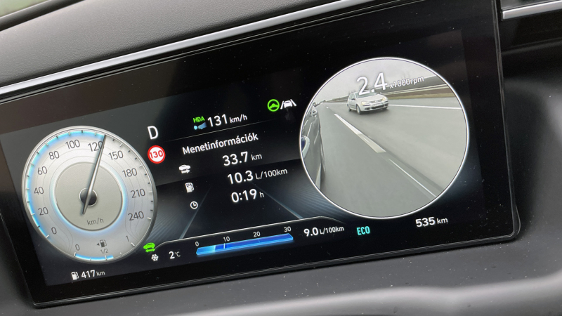Mindezek korrektül és szofisztikáltan teszik a dolgukat, közülük egyet emelnék ki, mégpedig az aktívnak is nevezhető holttérfigyelőt: indexeléskor a tükörházba épített kamera hátrafelé néző képét dobja fel a fordulatszámmérő vagy a kilométeróra helyére, mutatván is így a holtteret. Okos és különleges megoldás.
