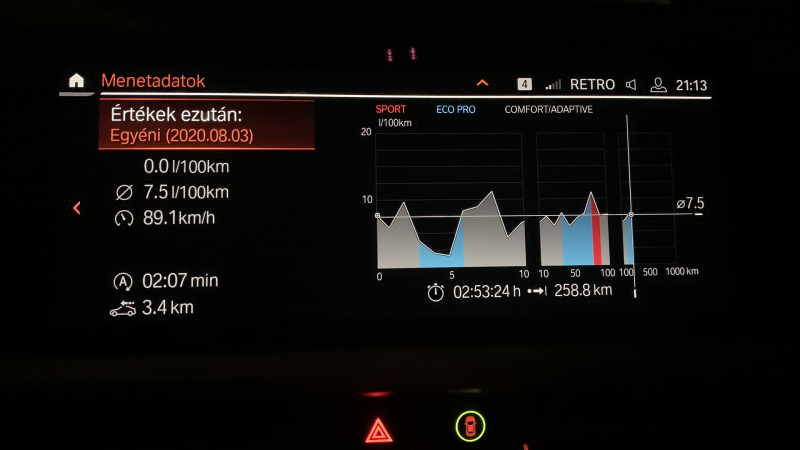 A hatékonyság is példaértékű: alig hittem a szememnek, de a családdal (két felnőtt, két kisgyermek és telepakolt csomagtartó), 130 km/h-ra állított tempomattal autózva a szokásos Balatonszárszó-Budapest útvonalunkat 7 l/100 km-es fogyasztással abszolváltuk. Egy közel 400 lóerős, benzines, automata, összkerekes középkategóriás szedánnal, bárminemű elektromos rásegítés nélkül. Ez a produktum nem igényel magyarázatot. Nyilván, aki 7-8 literes fogyasztással közlekedik az M340i-jével, az rosszul választott típust, de a lényeg, hogy ez az autó erre is képes, ha a sofőr vissza tudja fogni magát (amit nem könnyű megtenni…). 8-9 l/100 km közötti étvággyal már néhány boldog pillanat is belefér, 10 liter körül pedig már vissza sem kell fognunk magunkat; a kapott menetteljesítmények ismeretében ez is kisebbfajta csodának tekinthető.