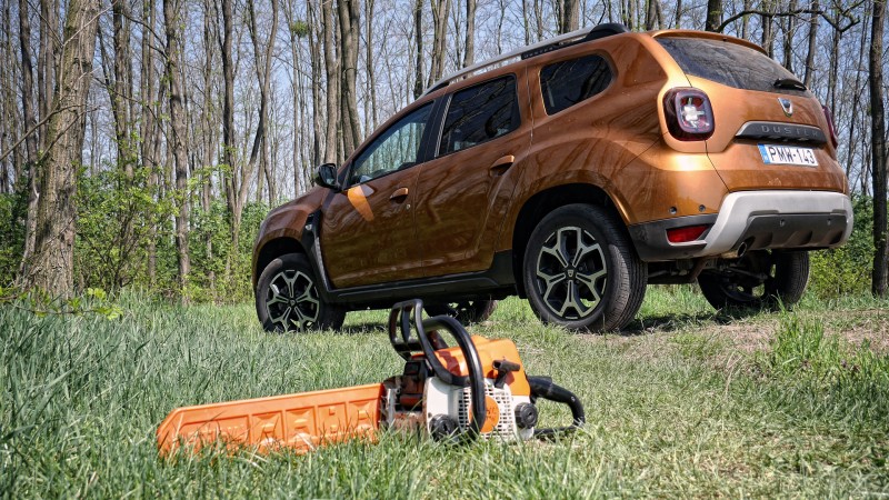 A turbómotorhoz és a csúcsfelszereltséghez összkerékhajtás is dukál, ami esetünkben egy kapcsolón keresztül menedzselhető: alapesetben elöl hajt a Duster, de válthatunk automata és a tengelyek közti nyomatékelosztást fixáló LOCK mód között. Noha javarészt erre nincs szükség, aki sokat használja lazább talajon, sárosabb környezetben a Dustert, annak jól jöhet az egyébként ügyes összkerekes rendszer.