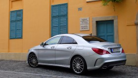 Mercedes-Benz CLA - galériaA lökhárítók agresszivitása az AMG csomag része, de ezen túl is minden művészi aprólékossággal került kidolgozásra a térhatású hűtőrácstól kezdve a motorháztető élein át egészen az oldalvonalon egymással szembe tartó árnyéktörő ívekig. Ahol az egyik inger lecseng, ott egy újabb kezdődik, hiszen a hátsó ajtótól induló izomköteg már a gyönyörű beosztású hátsó lámpákhoz tart. A fart szemlélve persze hiába is keresünk éles töréseket, itt még a szedán jelleg ellenére sem beszélhetünk lépcsős kialakításról, hiszen a puttony is lágyan simul a szélvédőre. A lökhárító függőleges nyílásai szintén az AMG harci díszeinek sajátjai, de a dupla kipufogóvégek a beszédes CDI felirat dacára is mindenkit egységesen intenek majd nyugalomra.