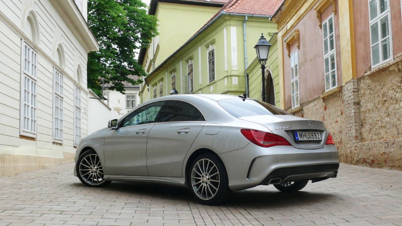 Hazafias érzelmekkel hiába is szeretném az összeszerelési minőséget méltatni, sajnos a műszerfal a márkához és a kategóriához méltatlan módon meg-megzörren, s a szerény futásteljesítményű tesztautóban voltak olyan normál használatból eredő kopási nyomok, amik vásárlói szemszögből kétségeknek teremtenek alapot. A CLA-ban mégis kiváltságos öröm helyet foglalni, hiszen a vezetői ergonómia tökéletes, s a vaskos kormánykereket megragadva még akkor is pezsegni kezd a vérünk, ha motorháztetőnk alatt a sportos felszín ellenére egy 2,2 literes dízelmotor dohog.
