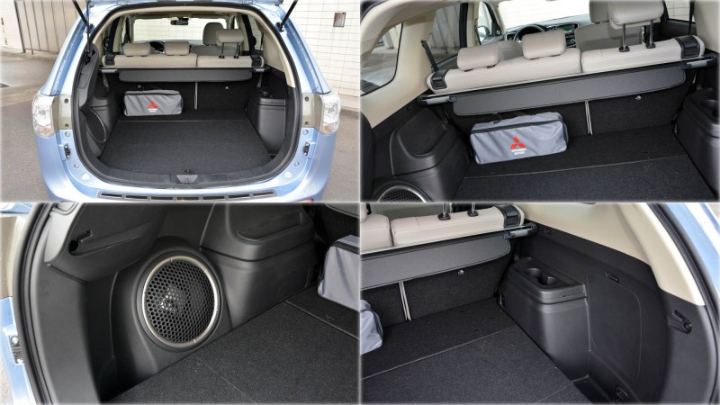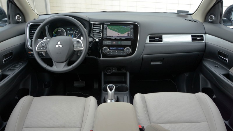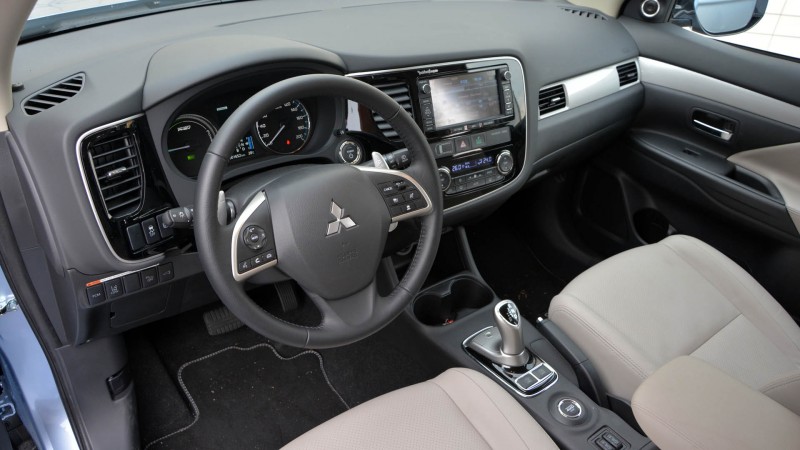 Minden más olyan, mint a korábban tesztelt Outlander esetében; a tágas belső teret jóformán észrevétlenül szűkíti be a 225 kilogrammnyi hibrid technika. A hátsó üléssorban 45 mm-rel magasabb a padló (avagy alacsonyabb az ülőlap), de alapvetően így is kényelmes helyviszonyokkal szembesülhetünk. Az első ülések kimondottan jól támasztanak meg és hosszú úton sem fárasztóak, a hátsók kényelmét pedig az öt fokozatban való dönthetőség fokozza. A csomagtartó alja 19 mm-rel húzódik magasabban, 463 literre apasztva a 477 literes teret, amelyből a drágábbik verzió szépen szóló Rockford Fosgate hifijének mélynyomója további 12 litert vesz el.