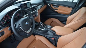 90 liternyi helyet vesz el az 50 kilós akkuCserébe nagyjából 135 kg-nyi plusz terhet cipel a bajor szedán a donorként szolgáló automataváltós 335i-vel összehasonlítva, a szállítandó holmik számára pedig 480 helyett 390 literes űr marad, ám a csomagtér bővíthetősége szerencsére megmaradt. Nagyjából minden más a ’régi’, azt leszámítva, hogy külsőleg is jól megkülönböztethető a tavalyi Genfi Autószalonon debütált ActiveHybrid 3: a benzin-elektromos hajtáslánc meglétét a C-oszlopon és az autó hátulján található igényes feliratok jelzik, de a jellegzetes, alacsonyabb légellenállást produkáló könnyűfém felnik is árulkodóak. Persze mindez nem kötelező, így a gyártó többi felnije, valamint M-sportcsomag és számtalan egyéb lehetőség áll a konfigurálni szeretők rendelkezésére. Tesztautónk az elegáns ’Luxury line’ kivitelben érkezett, a csodás gyöngyház fehér külső színhez pedig szép és otthonos, fabetétekkel díszített barna bőr enteriőr társult.