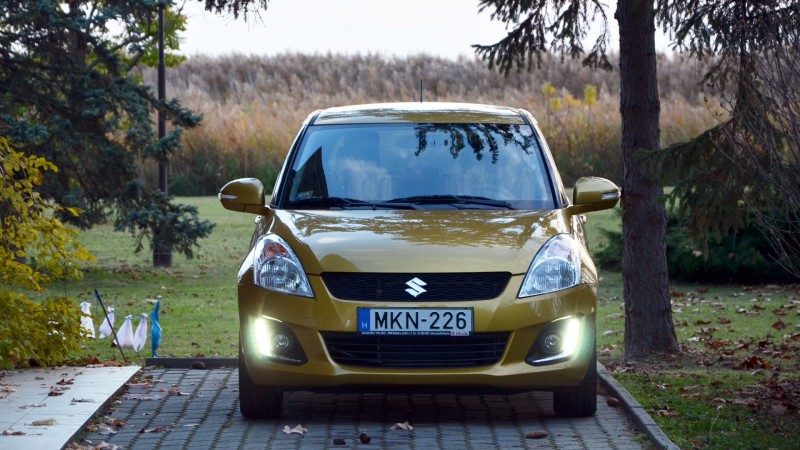 Azt persze nem hagyhatták a gyáriak, hogy a ’sima’ modellek változatlanul folytassák pályafutásukat, így érintetlen beltér mellett minden Swift enyhén átrajzolt első lökhárítókat kapott, és új (metál)színek illetve divatos könnyűfém keréktárcsák jelentek meg a kínálatban. Az öt ajtóval listaáron négymillió forintot kóstáló, és szinte minden földi jót tartalmazó GS csúcsfelszereltség arzenálja továbbá feltűnő és modern kiegészítővel gazdagodott a formás LED-es nappali menetfények személyében, amelyek igazán feldobták tesztautónk megjelenését, a vidám napsárga fényezéssel és a csinos 5x2 küllős, 16 colos alukerekekkel egyetemben.