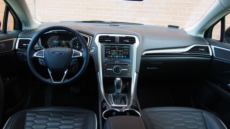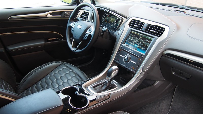Elegáns és dögös az új Ford Mondeo - galériaPersze a hangulatot már alapjaiban meghatározza a külcsín, amiről már fentebb is szóltunk: a nem túl praktikus, de kétségtelenül elegáns és méltóságteljes metálfekete szín, a gazdag krómozás, a Mondeo remekbe szabott formái, a két trapéz alakú kipufogó, a gyönyörű kerékszett, valamint a szedán karosszéria – utóbbi azért említésre méltó, merthogy az ’egyszerűbb’ Mondeók csakis kombiként vagy ötajtósként rendelhetők, és kizárólag az ár/érték arányban nem túl kompetens hibrid kivitel rendelhető négy ajtóval – márpedig a szedán karosszéria hiába nem olyan praktikus, mint a másik kettő, különösen egy nagy autó esetén eleganciában nincs párja.
