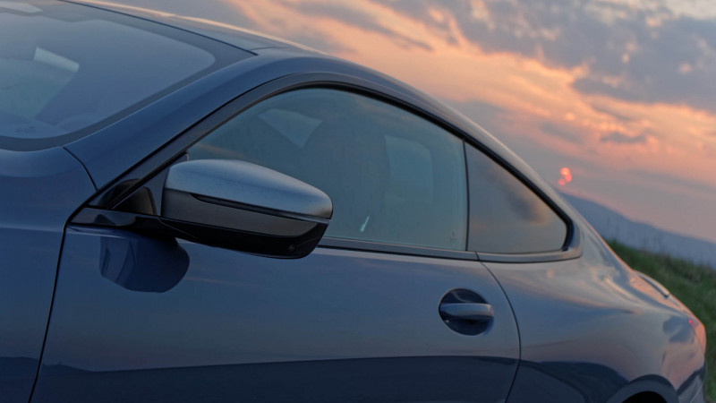 Az autó úgy lett egyszerre agresszív és elegáns, hogy közben kifejezetten karakteres is. A szélesre húzott, lefelé terebélyesedő hűtőmaszkok, a baljós tekintetű, lézeres fényszórók – amik egyébként szinte szó szerint nappalt varázsolnak az éjszakába –, a nagyon hosszan lejtő, klasszikus kupé tetőív, a kis légterelőben végződő hátsó, az amúgy is széles autót optikailag még jobban széthúzó hátsó lámpatestek, vagy éppen az izmos kerékjárati ívek mind-mind lenyűgöző részletek.