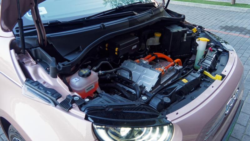 Amikor messzire kell menni, az autópályák mellett található gyorstöltőkből 85 kW-tal képes felpumpálni magát az olasz csöppség, vagyis a szinte teljesen lemerült pakkot fél óra alatt 80 százalékra tölthetjük. Ezzel rálicitál a fent említett japán és brit/német konkurenciára, a 11 kW-os váltóáramos töltési sebességnél viszont éppen kétszer gyorsabb a már kissé koros Renault Zoe. Vagy éjszaka (olcsón), vagy gyorsan (és drágán) töltünk: talán a fogyasztói szokások elemzése után alakították ki így a rendszert. Az olaszok kihasználták a ziccert és időzíthető klimatizálással is ellátták az autót. A hűtési hatékonysága álló járműnél nem az igazi és egy kissé zajos is, de legalább van.