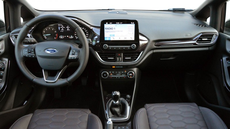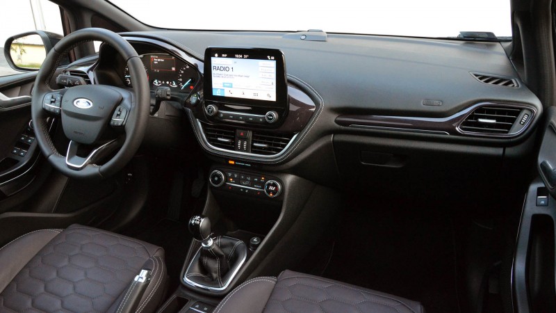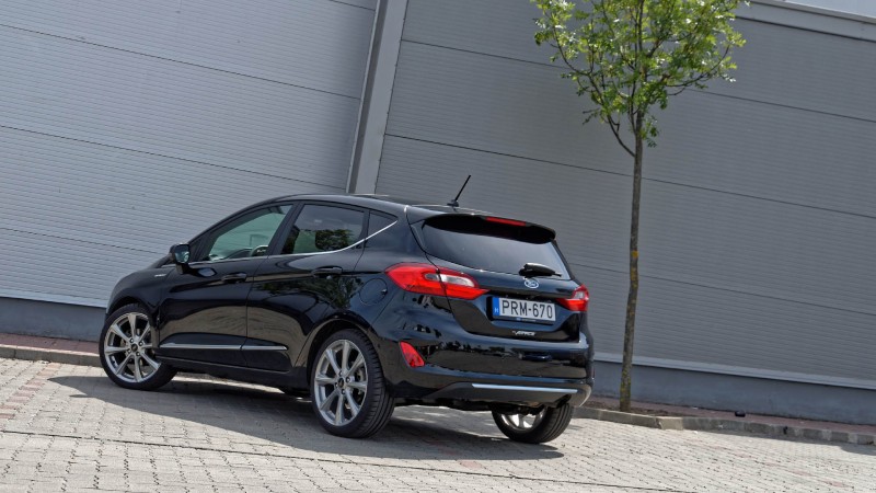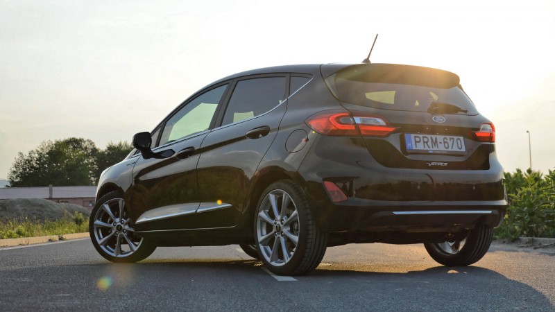 A hatfokozatú manuális szerkezet nem rossz társ a kis benzineshez: a kuplung jól használható, a váltókar pedig szépen siklik a fokozatok között, habár kissé hosszú úton jár. A kormányzás a Fordtól megszokott módon jól sikerült a Fiestában is: a szervo jól súlyozott, a volán közvetlen és az autó pontosan irányítható vele. Ugyanez igaz a futóműre is, ugyanis hiába van hátul a kisautóktól megszokott, egyszerűbb csatolt lengőkaros megoldás, a Vignale még a 18 colos kerekek ellenére is egészen jól tompította az úthibákat, miközben azért a sportosabban vett kanyarokban sem vallott szégyent.