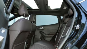A fény jó, a nyöszörgés rossz a tetőablakot tekintveTesztautónkba az ST verzión innen a legizmosabb hajtáslánc került bele, méghozzá az egyliteres, háromhengeres EcoBoost turbómotor 140 lóerős verziójának képében. Mondanunk sem kell, ez a ménes és a 180 Nm-es csúcsnyomaték egy ekkora autóba bőven elegendőnek bizonyul, még ha a 9,1 másodperces gyorsulásnál akár jobbat is várhattunk volna tőle – és érzésre is lehetett volna valamivel fürgébb a kategóriában nagynak számító teljesítmény fényében. Nyomatékból már alacsony fordulaton is jut bőven, de feljebb sem hal el teljesen az erőforrás, így viszonylag kevés váltással letudhatjuk a legtöbb forgalmi szituációt, beleértve akár az előzéseket is – persze ez mindig az adott helyzettől függ.