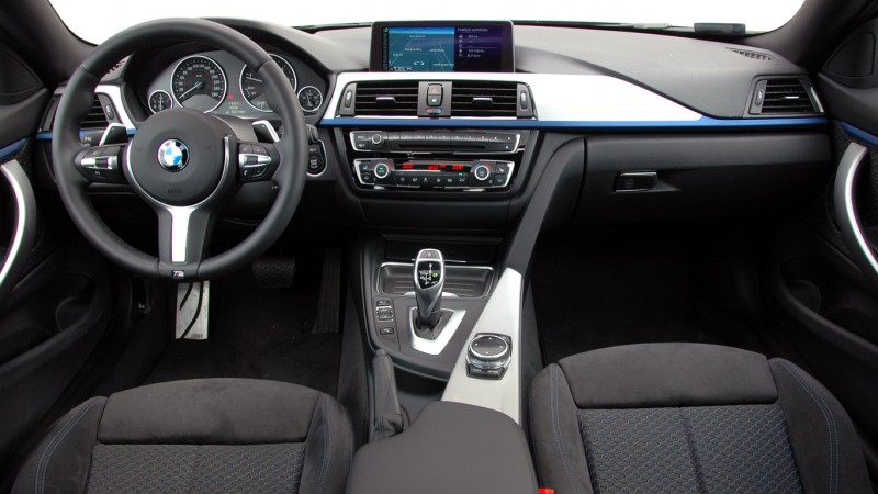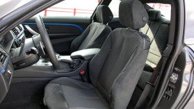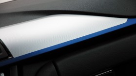A kilincset megragadva feltárul a keretnélküli ajtó, s mögötte a BMW uniformizált világa, amelyet ugyancsak az M csomag színesít meg valamelyest. Hogy az egyenműszerfal a már évtizedek óta ugyanazon elvek szerint kimunkált óracsoporttal erény-e vagy sem, leginkább ízlés kérdése, ám a hagyománytisztelet és a letisztult, ergonomikus tervezés mindenképp a bajorok munkájának eredménye mellett szól. Ezúttal a kellemes tapintású Alcantara és a kék mintázattal varrt szövet kombinációja alkot finom kontrasztot a hasonló mintázatú alumínium dekorbetéttel és a kék csíkkal; utóbbi egyébiránt a kulcson is stílusosan visszaköszön.
