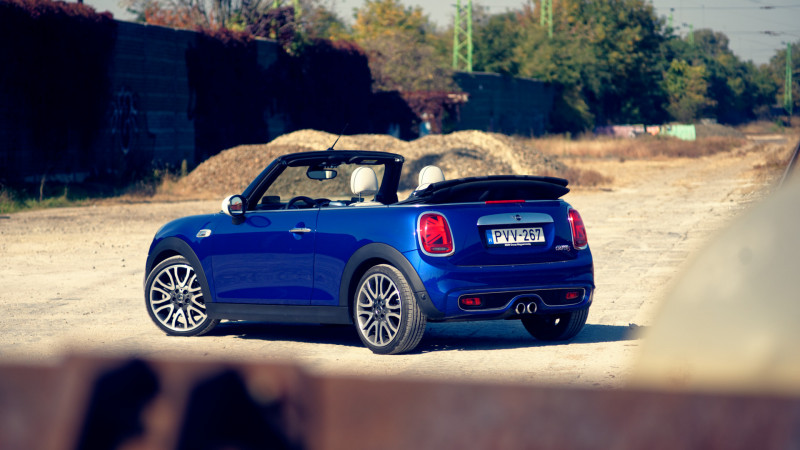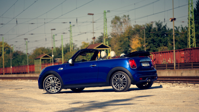 Mit számít azonban ez, ha az arcunkat simogatja a napfény és a hajunkat kócolja a szél? Olyankor valóban nem sokat, de a MINI azért többet ad annál, mint hogy pusztán élményszerzésre használjuk, mint például egy Mazda MX-5-öt vagy Fiat 124 Spidert. Van például hátsó ülésünk, aminek ugyan a háttámlája meredekebb, mint a háromajtós MINI-jé, de gyerkőcök, nagy szükség esetén pedig a felnőttek számára is elfogadható rövidebb távokon. Ez sokszor már önmagában aranyat vízválasztó lehet, arról nem is beszélve, hogy pakolni is lehet rá, ami remek kiegészítése lehet a nyitott tetővel 160 (plusz azért vegyük hozzá a nehezen hozzáférhető kalaptartót), zárt tetővel pedig 215 literes csomagtérnek. Már csak azért is, mert a szélterelő alatt megbújva azért attól sem kell félni, hogy piros lámpánál állva kikapják a pakkot.