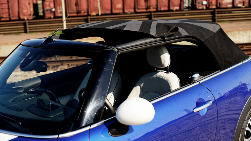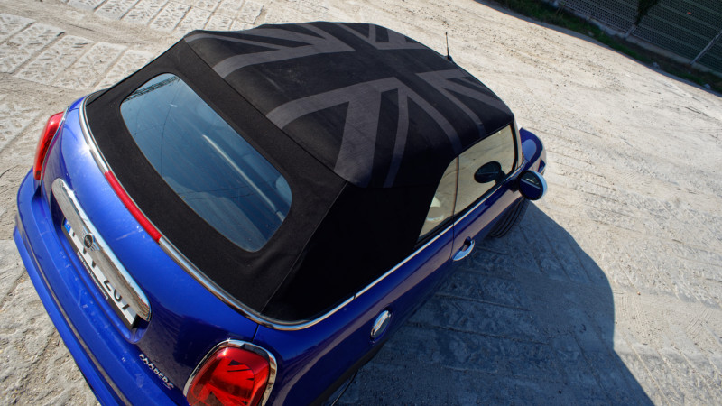 Zárt tető mellett a fém-műanyag-vászon kombinációjú tető hozza a kategóriától várható szintet. Egyrészt – ha nincs kedvünk megállni – a napfénytető funkcióval beengedhetünk némi szabad levegőt, bár ilyenkor még alacsonyabb sebességeknél is meglepően huzatossá válik az utastér, másrészt pedig a szigetelés egészen jól működik. Tévedés ne essék: a vászontetős MINI egyértelműen, hallhatóan hangosabb normál testvérénél, ám ezt legtöbbször csak az oldalról/hátulról érkező külső zajokon érhetjük tetten, a menetzaj nem válik zavaróvá.