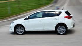 Nem sportautó, de élvezetesebb lettA sportosabb megjelenés ugyancsak megmaradt, amihez viszont izgalmasabb vezethetőség társul. A Lexus után szabadon a Toyota is lecserélte az 1,8 literes Atkinson-ciklusú benzinmotorral készülő HSD hibrid hajtáslánc hátsó futóművét – ezúttal a kettős keresztlengőkaros megoldásra esett a választás. A végeredmény pedig magáért beszél: az Auris irányíthatósága a közvetlen, ám kissé hiányosan kommunikáló volánnal felettébb élvezetes. A típus mérsékelt oldaldőléssel és semleges határozottsággal falja a kanyarokat, gázelvételre pedig még a hátsó traktusból is kihozhatunk némi játékosságot.