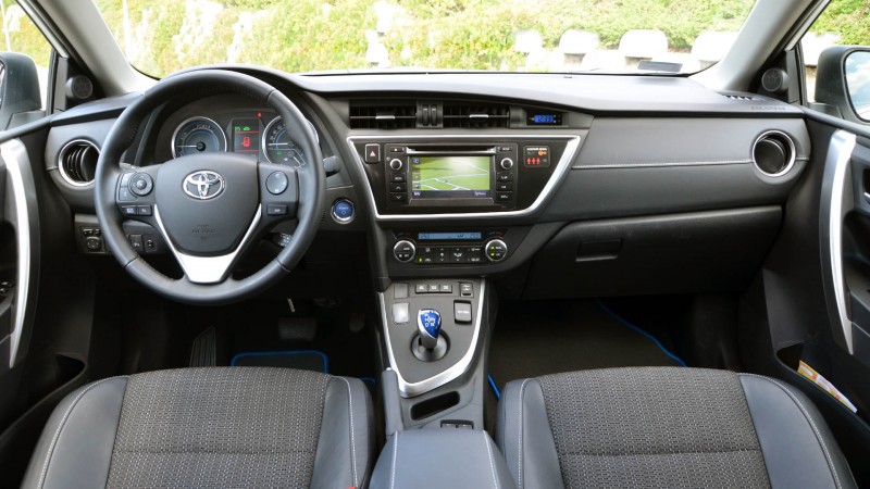 A panorámatető nem Vajda kolléga kedvenceA belső tér változatlan maradt, annak előnyeivel és hátrányaival együtt. Az előnyök közé sorolnánk az összeszerelést, hiszen a masszív anyagok, a precíz illesztések és az úthibákon is csendben maradó belső az Auris mellett szól, ám tesztautónkban a csomagtartó kárpitozása lötyögött, a hátsó könyöktámasz pedig már-már használhatatlanul 'lefittyenve', egyszerű kidolgozásával keltett bennünk negatív érzéseket. Az összbenyomás azért így is pozitív, még ha a kissé komor, vízszintes tagolású fekete belső tér (ami rendelhető szürkében is) több megkérdezettünk tetszését sem nyerte el – ez viszont már erősen szubjektív terület, s nekünk például semmi bajunk az Auris belső formatervével.