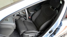 Térjünk azonban vissza az autóra: az utastérbe bepillantva talán még kevesebb jel utal arra, hogy nem egy átlagos i30-cal van dolgunk, ám az a néhány részlet rögtön elárulja az autót. A legszembetűnőbbek mindenképpen a sportülés és a sportkormány, melynek két kék gombja csak úgy világít az egyébként kissé komor, fekete utastérben. Néhány díszesebb betét, piros részlet azért elfért volna még, hiszen bár a több helyen – a váltón, az ülés háttámláján, a műszerfalon, a kormányon és a küszöbön is – megjelenő N betűk azért sokat adnak, a műszerfal középső betétje vagy éppen az amúgy dicséretes kézifékkar például kemény műanyagból vannak, ami nem kelt túl minőségi hatást. Ettől függetlenül azért az általános minőségérzettel egyáltalán nincs gond, ahogy az összeszerelés is példás.