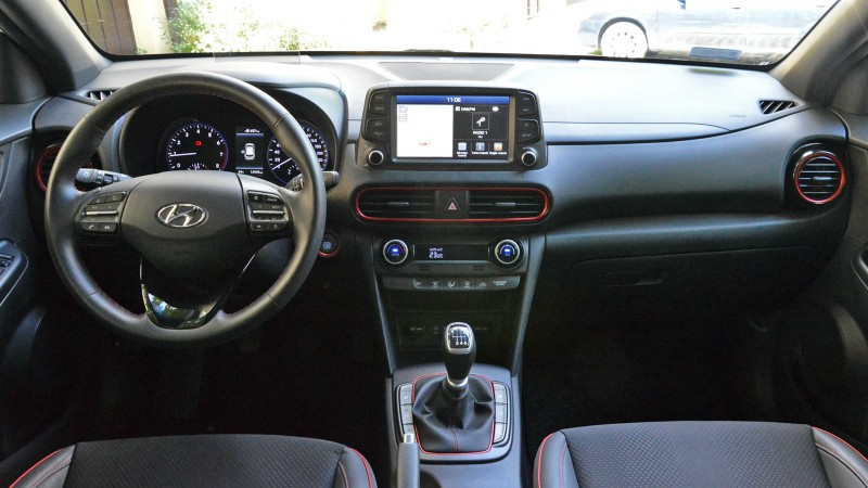 Az EcoSportnál ugyanez az egyik legdrágább változatA belső tér pedig jól közvetíti azt, hogy a Kona nem egy olcsó, magasított kisautónak, hanem egy kisméretű mindenesnek készült. Miközben az EcoSport csúcsverziójában is csak a műszerfal tetején találunk puhaságot a kemény, rideg műanyagok tengerében, addig itt a műszerfalra is nemesebb matéria jutott és az ajtók kialakítása is igényesebb. Az összeszerelés is meggyőzőbb, a részletek iránti figyelmesség pedig sokkal jobban tetten érhető: a tesztautónkban következetesen feltűnő vörös részleteket (légbeömlők, váltó alja, indítógomb, ülések kédere és díszvarrása) néhány tízezerért megkapjuk, akár narancssárga vagy zöldes színben is. És akkor még nem beszéltünk a prémium kategóriába illő extrákról, mint például az ülésszellőztetés is.