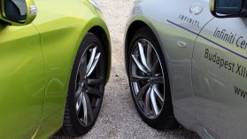 Pedig sportosságból lenne bőven: mindkét autó arra született, hogy a rendkívül gyors, jól kontrollálható kanyarvétel mellett szép fenékbedobással szórakoztassa tulajdonosát. A széria önzáró differenciálműnek köszönhetően már az Infiniti mozgása is irigykedő pillantásokat válthat ki a fontos örömextra híján csak irigykedő BMW 335i kupé-tulajdonosokból, a nála könnyebb Hyundai azonban a mozgékonyságot még tovább növelő Infiniti-féle összkerékkormányzás nélkül is hatalmas örömtáncos. Az első futóműhöz képest betonkeményre hangolt hátsó ugyanis olyan szépen adagolja tenyerünkbe a fenékmozgatás képességét, hogy a Genesisre érdemes lenne egy egész driftiskolát felépíteni.