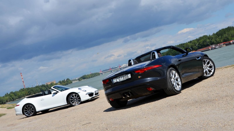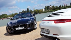 Elegendő. Ez igaz rá is.A motorok már az orgánumukkal megvesznek bárkit, de szerencsére hozzá illő menetteljesítménnyel is szolgálnak. A legnagyobb meglepetést a Jaguar erőforrása okozta, ami a nem éppen könnyű roadstert a gyári 4,9 helyett 4,5 másodperc alatt kilőtte 0-ról 100 km/h-ra. A 911 hozta a gyári 4,7 másodperces adatot. Mindkét autónál van feljebb: az F-Type ötliteres, kompresszoros V8-asa 495, a Porsche nyitott verziójának hamarosan érkező Turbo S variánsa pedig rögtön 560 lóerőt tesz le az asztalra. A 350/380 paripával mi így is remekül szórakoztunk, s ez a teljesítmény már bőven elég ahhoz, hogy meglepetésekről gondoskodjon, miközben a tömeg alacsonyabban tartása még nagyobb dinamikában részesít minket.