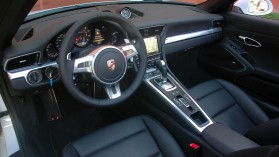 Itt a funkción van a hangsúly...Belül ugyanezt a kettősséget tapasztaljuk. Míg a 911 a kötelező luxushangulat mellett funkcionalista kialakítást kapott, addig a brit roadster a showelemekre is nagy hangsúlyt fektet. Ezen a szinten és ebben a kategóriában azonban a fellengzősnek tűnő, felesleges részletek is inkább igényességről, gondoskodásról árulkodnak, amellett, hogy hangulatunkat is magasabb szintre tornásszák. Miközben az F-Type-ban az ajtó síkjában eltűnő kilincseknek, vagy éppen a csak szükség esetén kiemelkedő szellőzőrostélynak örülhetünk, a 911 inkább a személyre szabhatóság teljesebb mértékével igyekszik kompenzálni. Versenysportos részletként azért a bal oldalon lévő gyújtáskapcsolónak örülhetünk, mint ahogy a pilótafülke letisztultsága, funkcionalitása és állíthatósága is példás.