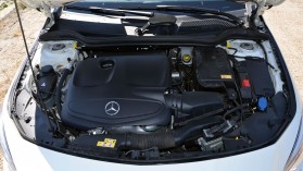 Nem csak kívül, belül is jól sikerült - galériaSzépen vizsgázott a 170 lóerős 220 CDI jelű dízelmotor, ám a sportos CLA egy jó benzinessel az igazi – egyszerűen nem illik a prémium miliőbe a négyhengeres dízelmotor kemény járása, mint ahogy a megfontoltan kapcsolgató, és néha-néha zavarba hozható hétfokozatú duplakuplungos automataváltó sem igazán. A legutóbb próbára fogott CLA viszont a 200-as benzines kivitelben érkezett hozzánk; a megjelölés egy 1,6 literes, közvetlen befecskendezéses turbós egységet takar, ami szintén négyhengeres, de ha hajtjuk, meglepően izgalmas, érces hangon duruzsol, finoman közlekedve rendkívül csendes, és minden körülmények között kulturált – még az ügyes start/stop rendszer működésbe lépésekor is.