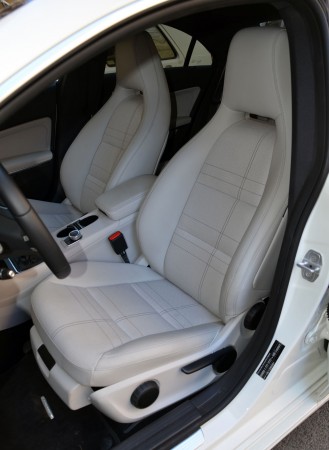 Gyönyörűek ezek az ülések, főleg sötétbenAnnál is inkább, hogy a 470 literes, és bővíthető csomagtartó abszolút nem számít szűkösnek, az első sorban a szülők kiváló helyviszonyoknak és kényelemnek örvendhetnek. A jól tartó, igencsak kényelmes, elöl is ’egybefejtámlás’, és a világításcsomag megrendelése esetén sötétben gyönyörűen megvilágított ’üregű’ ülések támlái 193 centis magasságomnak némileg alacsonyak voltak, de nem annyira, hogy az zavaró legyen, és 190 centi alatt különben tökéletesek az ülések, minden dimenziójukat tekintve. Az említett félig szövet, félig műbőr fotelok szintén a kicsit több mint félmillió forintot kóstáló ’Urban’ szinthez járnak, olyan finomságokkal egyetemben, mint a sportosabbra formált lökhárítók, a hátul kétoldalt kikandikáló téglalap alakú dögös kipufogóvégek, és még számos látványt fokozó elem, amelyek miatt egyszerűen kötelező az opció kiválasztása – így felszerelve fényévekkel ütősebb a CLA megjelenése az alapváltozatnál, és talán még a kihívó AMG-csomagos kivitelnél is harmonikusabb.