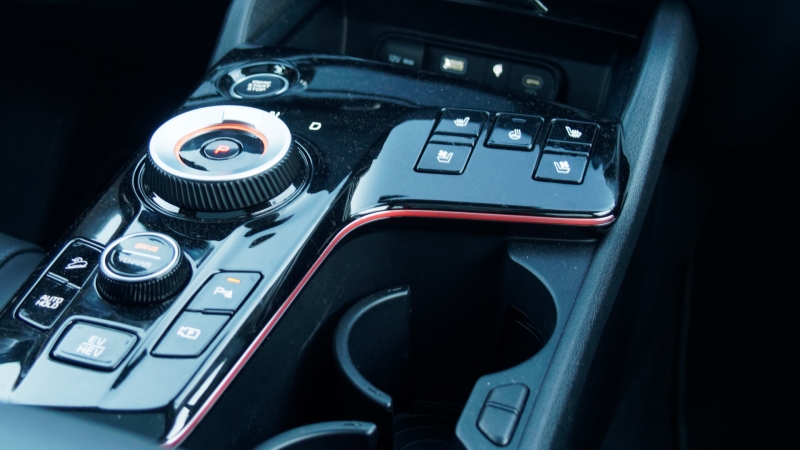 Öt gomb az ülések és a kormány temperálásához, forgótárcsák az irány és a hajtási mód vezérléséhez. A kamerarendszer bármikor bekapcsolható