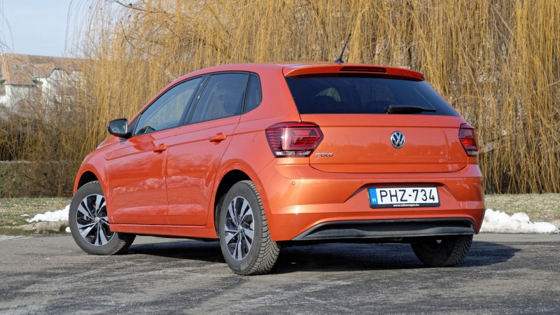 Nem is én volnék, ha nem a külsővel kezdeném, de a Polo bőven ad okot arra, hogy beszéljünk a megjelenéséről. Első ránézésre a szokásos németes letisztultsággal „untat” minket az autó, de az izgalmas narancssárga fényezés máris más megvilágításba helyezi a dolgokat. A keréktárcsák csak 15 colosak, de így is mutatósak (a rugózásnak pedig kedveznek), és ami számomra a legkedvesebb meglepetés volt, hogy a tervezők odafigyeltek az alapáras fényszórók megrajzolásakor is. Mostanában sok gyártó esik abba a hibába, hogy csak a feláras, olykor igencsak borsos összegért kínált LED-es fényszórókkal (ami egyébként a Polóhoz is rendelhető) igazán látványos az adott modell, ám tesztautónk esetében a halogén megoldások is jól mutattak, köszönhetően a hűtőrácson végigfutó króm csíknak, ami a búra mögött is folytatódik.