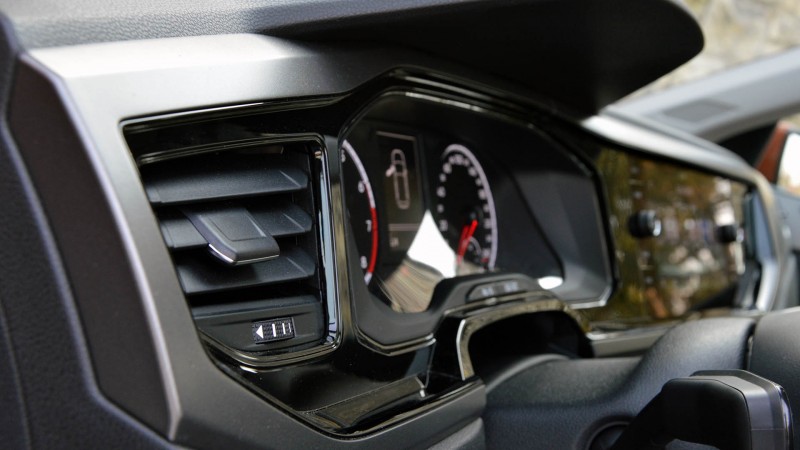 A Polót tehát komolyan kell venni, és ez igaz az utastérre is. Azt egy kicsit sajnálom, hogy a látványos külső fényezés mellé az importőr nem rendelte meg a narancssárga belső betéteket is, de még a szürke megoldásokkal sem túl komor az összkép. A zongoralakk már régóta igen megosztó, de a Polo esetében kiválóan alkalmazták a mérnökök, ahogyan a baloldali légbeömlőt, a műszerfalat és a multimédiás rendszer méretes érintőképernyőjét körülvéve teszi aszimmetrikussá az utasteret – egyébként is a vezető felé fordul az egész középkonzol. A Polóhoz alapáron érintőképernyős multimédiás rendszer jár, de a feláras egység a két tekerőgombbal és az érintőpanelekkel elképesztően jól mutat, és ha még modernebbé szeretnénk varázsolni az utasteret – amire egyébként szerintünk nem feltétlenül van szükség – akkor opcióként teljesen digitális műszeregység is elérhető az amúgy jól teljesítő analóg órák helyett.