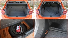 A multimédiás rendszer egyébként gyors és logikus, ismeri az Apple CarPlay és Android Auto alkalmazásokat is, a középkonzol aljában pedig a két USB aljzat mellett vezeték nélküli töltő bújik meg. A kormányt puha bőr borítja, az ülések kényelmesek, a könyöklő pedig állítható – igaz, teljesen előrehúzva beleütközik a behúzott kézifékbe, csak hogy valami negatívumot is felhozzunk. A helykínálat tekintetében természetesen a szélesség lehet a hunyó, de kisautós mércével mérve ezt a lécet is bőven megugorja a Volkswagen modellje: elöl semmire nem lehet panaszunk, és két fő hátul is kényelmesen ülhet – akár két 185 centis ember is elfér egymás mögött/mellett. Az alapból 351 literes csomagtér is dicséretes, és még pótkerék is jár a Polóhoz, míg az üléseket ledöntve akár 1125 literes űrt is teremthetünk, az állítható magasságának köszönhetően pedig teljesen sík is lehet a padló.