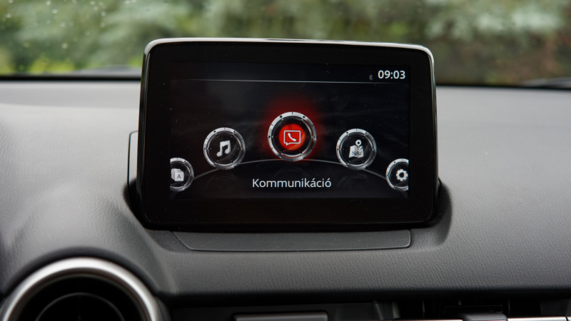 A központi rendszer látszólag változatlan, ám a 7 colos kijelző végre ki tudja szolgálni az Android Auto és Apple CarPlay okostelefon-integrációt, így szinte felhőtlenül használhatjuk annak minden erényét, feleslegessé téve a gyári navigáció opcióját. Viszont a forgókapcsolóval és érintéssel is működtethető rendszer menet közben már csak a kapcsolóktól érkező parancsot hajlandó elfogadni, ami macerássá teszi a kezelést. Mivel utólag biztosan van megoldás a tiltás kivételére, ez csak látszólagos probléma, mindenesetre mi nem találtunk logikát abban, hogy menet közben ne lehessen nyomkodni a kijelzőt.