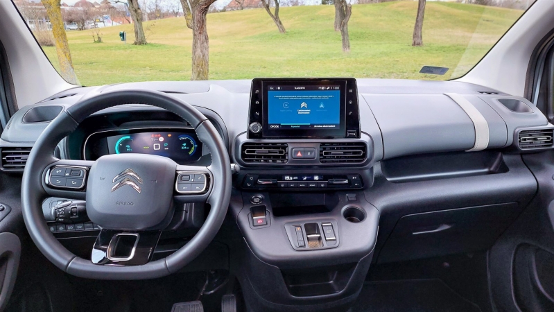 A Citroën ë-Berlingo neve melletti „XL” toldat pontosan 35 centit jelent, ami egy átlagos bőrönd szélessége. Ezzel együtt is csupán 4753 cm hosszú ez a változat, szemben a „M” méretosztályba tartozó műszakilag teljesen azonos rövid változattal (tesztünkben a konszerntárs Peugeot e-Rifter), ami 4403 cm hosszú. Jól érződik a dimenziókból, hogy nem bántóan hosszú az XL-es verzió sem, az ë-Berlingo kicsit nyúlánkabbnak hat.