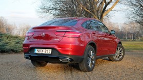 Nagyon formás lett a hátulja, szépen kijön a kupéformaTudni érdemes, hogy egyelőre az összes változathoz szériában jár a 4MATIC összkerékhajtás és a jó kis 9-sebességes 9G-Tronic automataváltó, de később várható egy egyszerűbb, olcsóbb belépőváltozat érkezése. A tömeg tekintetében különben nagyjából kilóra megegyezik a GLC és a GLC Coupé, ami a tesztelt hajtáslánccal üresen mintegy 1,8 tonnát jelent. Szigorúan objektíven vizsgálódva persze nem kérdés, hogy a GLC és a GLC Coupé között ki jönne ki győztesen, hiszen a Coupé dögösebb formáinak a szó szoros értelmében, és átvitt értelemben is ára van: picit több helyet foglal, rosszabb belőle a hátralátás, kisebb a hátsó fejtere, csomagtere alaphelyzetben 50, s bővített állapotában 200 literrel szűkebb (500-1400 liter, 550-1600 helyett), ráadásul ára közel 1,5 millió forinttal magasabb, igaz, a magasabb alapfelszereltség révén a súlyozott különbség kisebb.