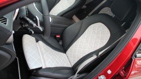 Gyönyörű, de kényes a fehér-fekete designo belsőA korábban tesztelt GLC 250 d-nél az egyébként szuperigényes futóművel nem voltunk maradéktalanul kibékülve, aminek elsődleges okát akkor az óriási, 20 colos defektmentes kerekekben láttuk. És igazunk volt: annak ellenére, hogy a most próbált GLC Coupé még a Mercedes büszkeségét, az Airmatic légrugózást nem kapta meg, harmonikusabban rugózott, pedig csupán egyetlen collal voltak kisebbek a kerekei. Mi biztosan beérnénk a széria 18 colos papucsokkal (mégpedig nem defektmentes kivitelben), amelyek még harmonikusabb viselkedést garantálnak. Egyébként egészen feszes a GLC Coupé hangolása, azonban Comfort üzemmódban az állítható lengéscsillapítás puhábbra veszi a csillapítást, ami különösen városban, gyengébb minőségű országúton és az útról letérve jön különösen jól. Sport és Sport+ állásban persze rázósabb élmény utazni, cserébe viszont ilyenkor stabilan kanyarodik a GLC és igencsak virgonc, ráadásul kormányzásával szintén elégedettek voltunk, elegendő visszajelzést biztosít.