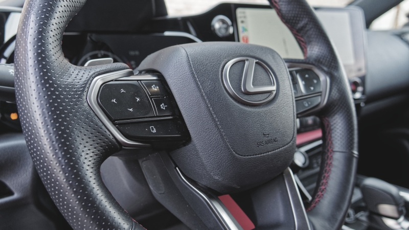 Nem unatkozott az IT-részleg, ezt mutatják például a kormánykerék kezelőszervei is. A gombokat megnyomva a HUD-on megjelenik az éppen vezérelni szándékozott funkció. Ezzel a tévedés szinte kizárt, mégsem kell levenni szemünket az útról. A malőrök elkerüléséért amúgy is sokat tesz az NX. Három helyen jelzi a keresztirányú forgalmat. Ilyenkor nyilak futnak a szélvédőre vetítve és a középső kijelzőn (ott ráadásul rögtön duplán) is. Vész esetén előbb csipogással, majd akár aktív fékezéssel is reagál a rendszer.