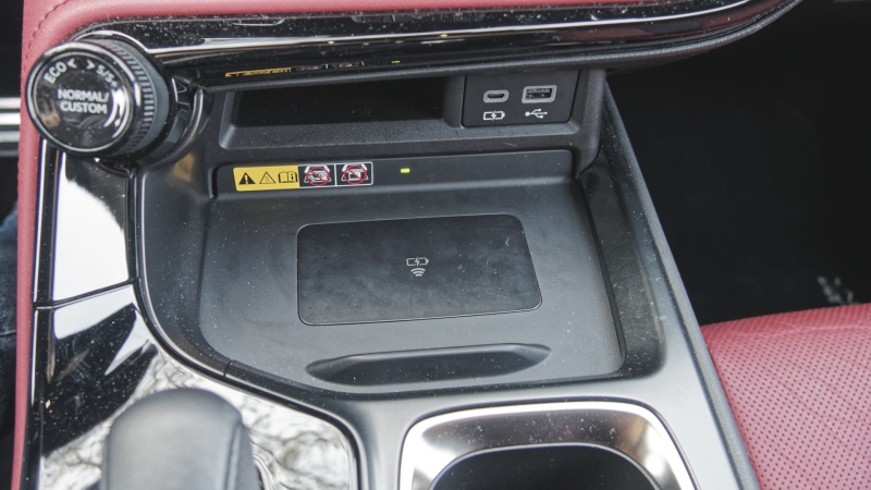 Magyar nyelvű beszédvezérlésre, üzenetek felolvasására egyaránt alkalmas a Lexus Interface. Ezeknél fontosabb, hogy a telefontükrözéshez nincs szükség vezetékre, készülékünket pedig töltőpad várja. A CarPlay stabilan működött, a csatlakozás sebességére sem volt panaszunk, a töltés kifejezetten gyors volt, még a sokszor gátló tényezőként funkcionáló védőtok sem jelentett kihívást.