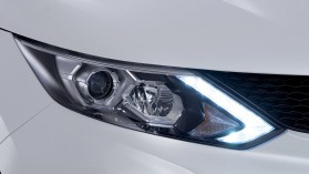 Minden részletében a fejlődés útjára lépettAmi külcsínt illeti, a radikális megújulás egyértelmű, s ezzel a magabiztos és tiszteletet parancsoló fellépés is garantált. A tervezők ügyesen játszottak az árnyékoló ívek domborulataival, a hangulatot pedig tovább fokozza az összes modellváltozatban széria LED-es nappali menetfény. A technológia máshol is visszaköszön: a tompított és a távolsági fényszóró szerepében a legdrágább szinten ugyancsak világító diódás fényforrások tisztelegnek, amelyek nem csak a xenonnál egyenletesebb fénnyel, de 50 százalékkal kevesebb fogyasztással és hosszabb élettartammal is bírnak. Mindezek ellenére az újdonság kimunkált részletgazdagsága mellett sem kelt nagy feltűnést az utakon, aminek egyszerű oka van. Mivel a nemzetközi közízlésnek való megfelelés kényszere mellett a művészek kezét számtalan objektív rendelet, szabvány, és levetkőzhetetlen béklyó köti, általában nem kenyerem az egyes gyártók formai jegyeit összehasonlítani, de ez esetben különösen feltűnő, hogy a Qashqai néhány közismert és már szokványos látványnak számító jármű dizájnelemeiből összegyúrható lenne.