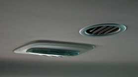 Légbeömlők és lámpák minden sorban - galérialábtér. Leghátul már valamivel nagyobb kompromisszumot kell kötni, de cserébe az itt utazók is egyénileg állíthatják a háttámlák dőlésszögét és 1,8-1,85 méteres magassággal még bőven elfogadható a hely.