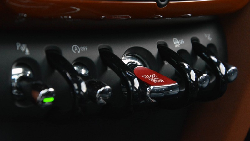 Mindenhol találni valami finomságot - galériaTérjünk azonban vissza az autóra, amely belül is hozza az ellenállhatatlan MINI stílust: a látványos billenő-kapcsolók, a mindenféle szín megjelenítésére képes hangulatvilágítás és a kerek műszerek már önmagukban megalapozzák a hangulatot – egyébként még maga a műszerfali betét is képes világítani, ahogyan azt Vajda kolléga korábban meg is örökített. A feláras, kifejezetten kényelmes és nem mellesleg látványos székek fejtámlájának hátán az Egyesült Királyság zászlaja rajzolódik ki, de a Union Jack-kel több helyen is találkozhatunk még. A külsőre rímelő színösszeállítás egyébként kifejezetten jól áll az autónak.